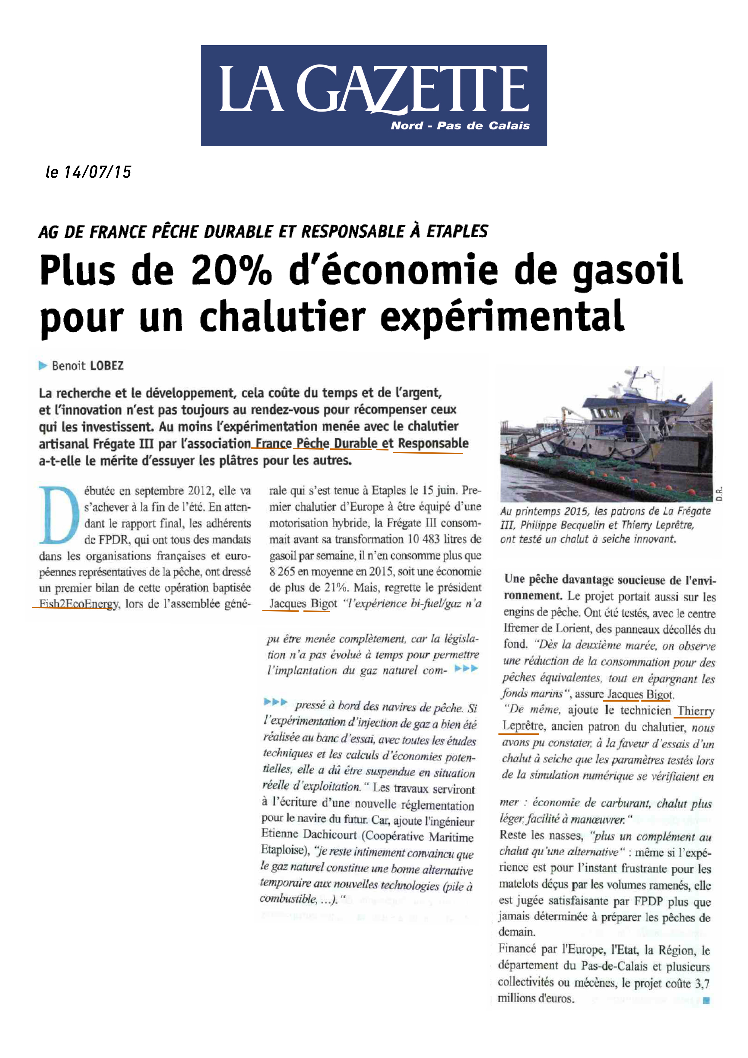 LA GAZETTE NPDC – Plus de 20% d’économie de gasoil pour un chalutier expérimental :